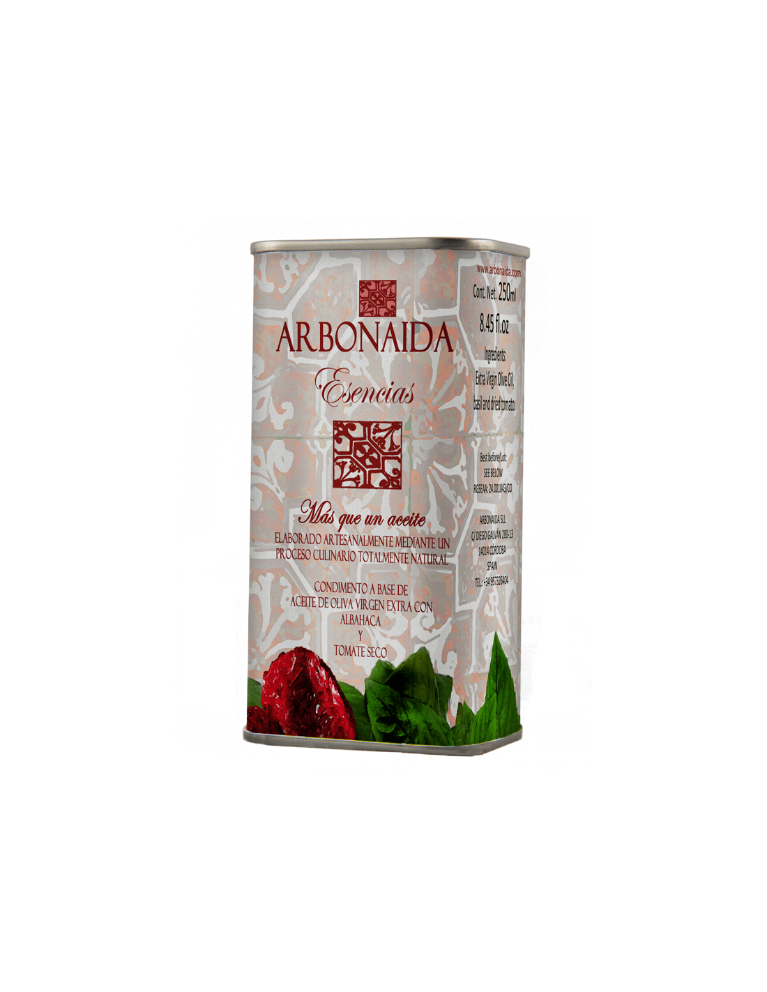 Huile d'olive au basilic et aux tomates séchées.